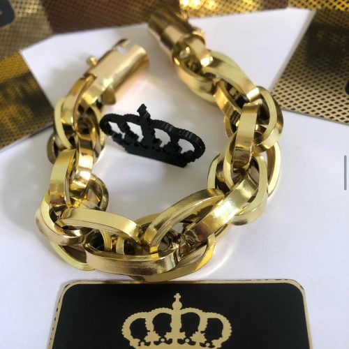 Pulseira Grumet Duplo Ouro 18k 750 25 Gramas com letra no fecho