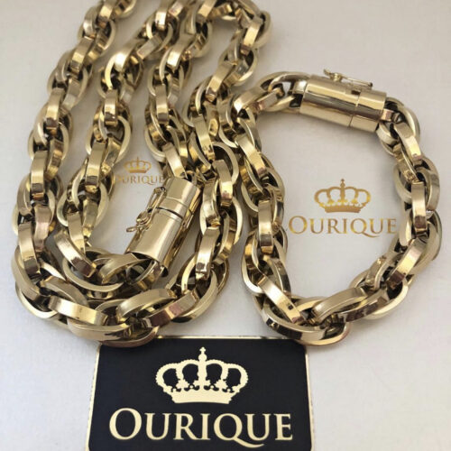 Conjunto Corrente e pulseira modelo trançada e pingente centurião romano ouro 18k 750