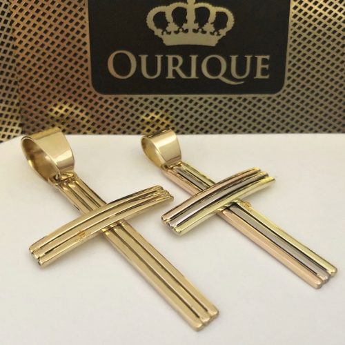 Pingente Cruz modelo três garfos ouro 18k ouro amarelo e rose