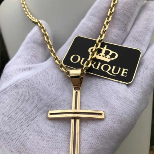 Pingente Cruz Personalizado Ouro 18k 750 máquina 3D