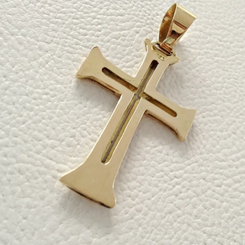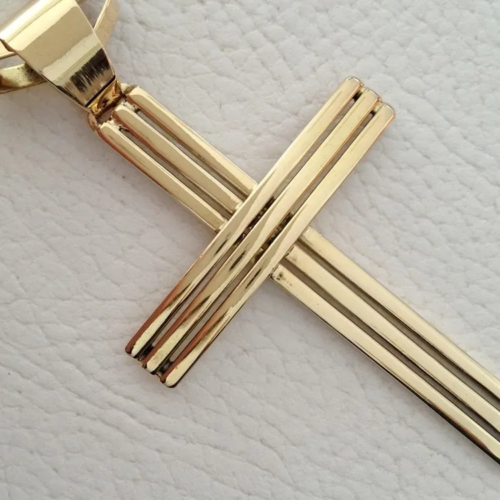 Pingente De Cruz Ouro 18k 750 Modelo Três Garfos 12 gramas