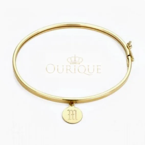 Pulseira Argola Ouro 18k 750 Com Pingente Bracelete Modelo algema