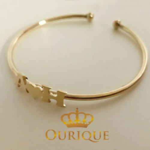 Pulseira Feminina Bracelte Argola Com Letras Ouro Amarelo 18k 750