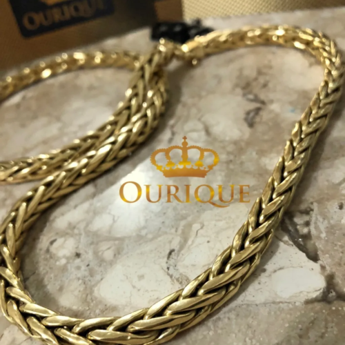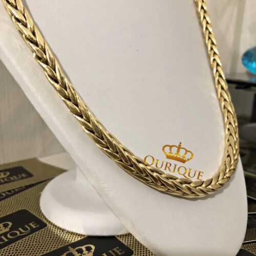 Corrente modelo trançada fio quadrado de ouro amarelo 18k (750) 92 gramas