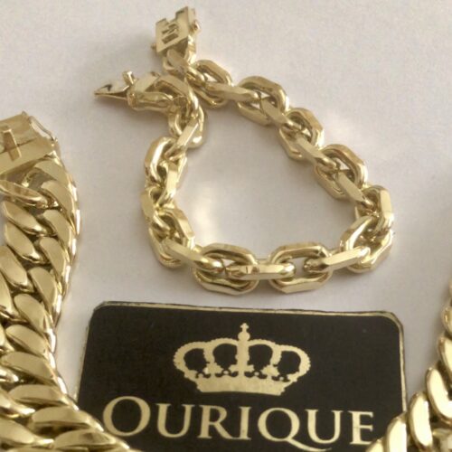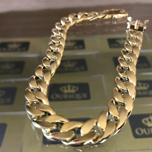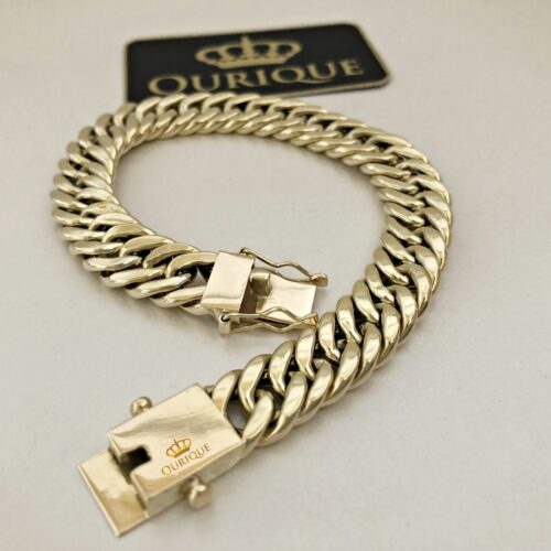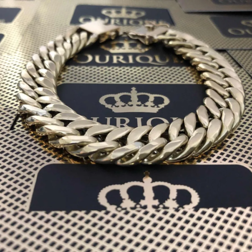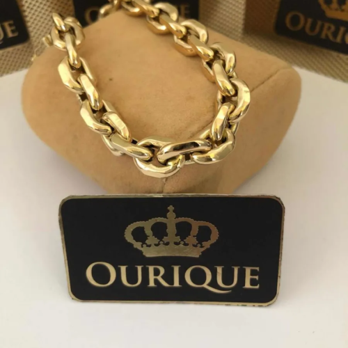 Pulseira maciça de ouro 18k com placa grumet 1×1 100 g