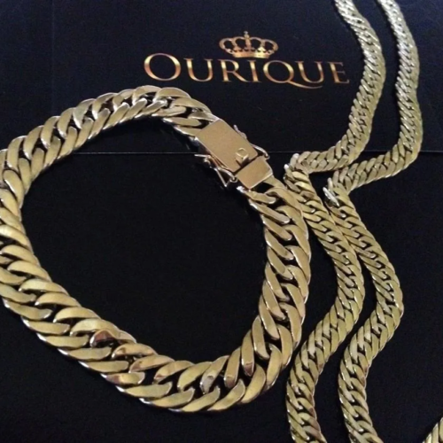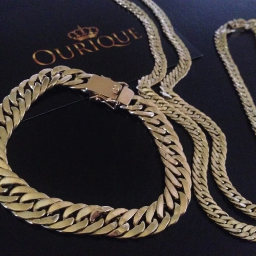 R$ 25.975,00Quick ViewConjunto maciço de ouro 18k corrente e pulseira modelo grumet duplo 130 gramas